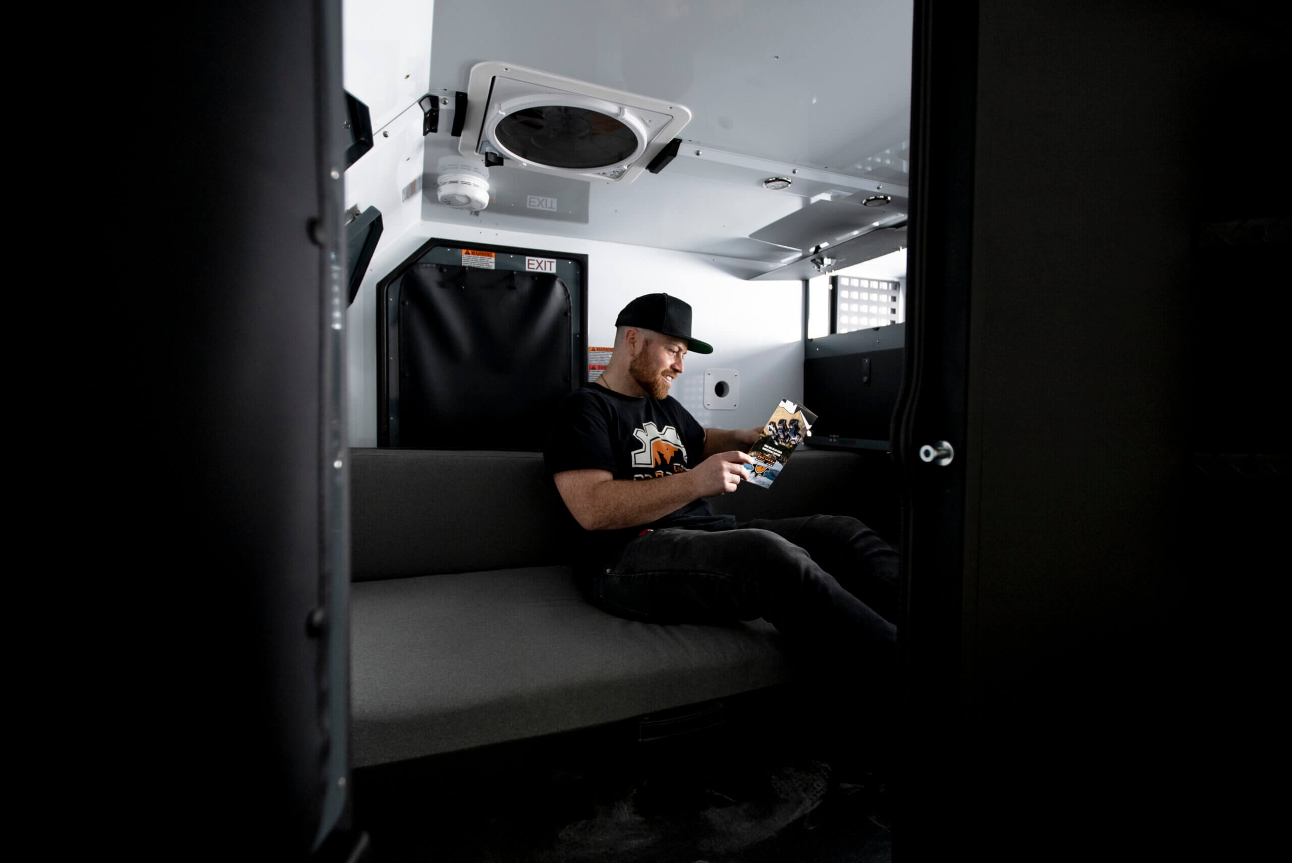 - Interior-mounted Smoke Detector, CO2 Detector, & Propane Detector